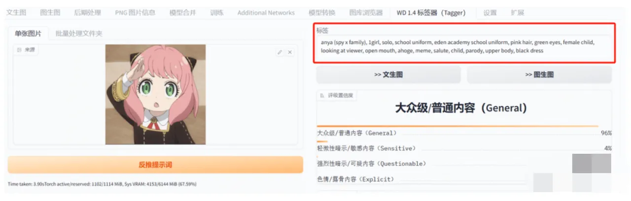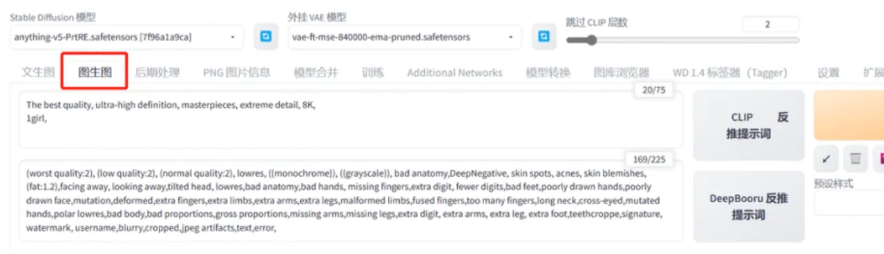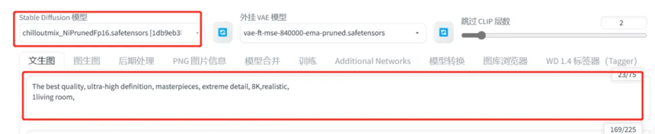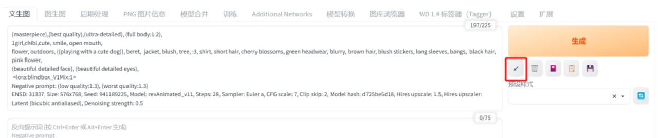 回到SD,粘贴到关键词的文本框,点击右边的按钮