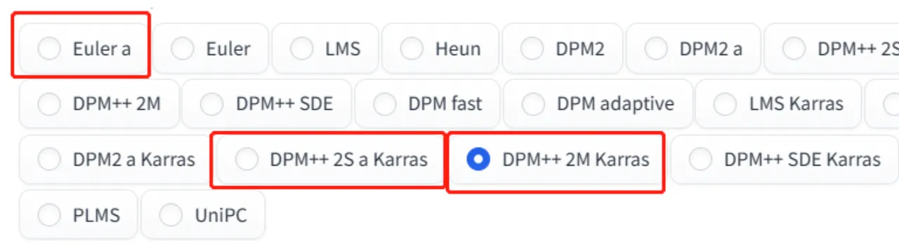 我们这里就选三个比较常用的采样器