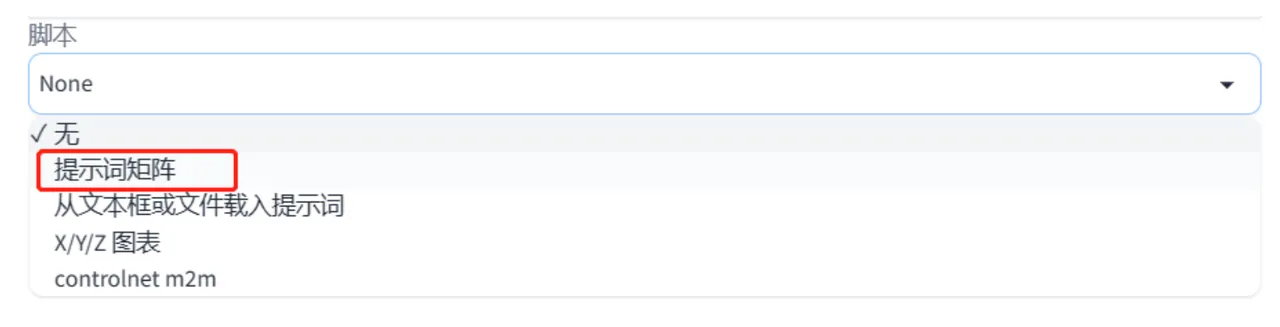 那我们就要用到最下面“脚本”里的“提示词矩阵”,直接点击就可以