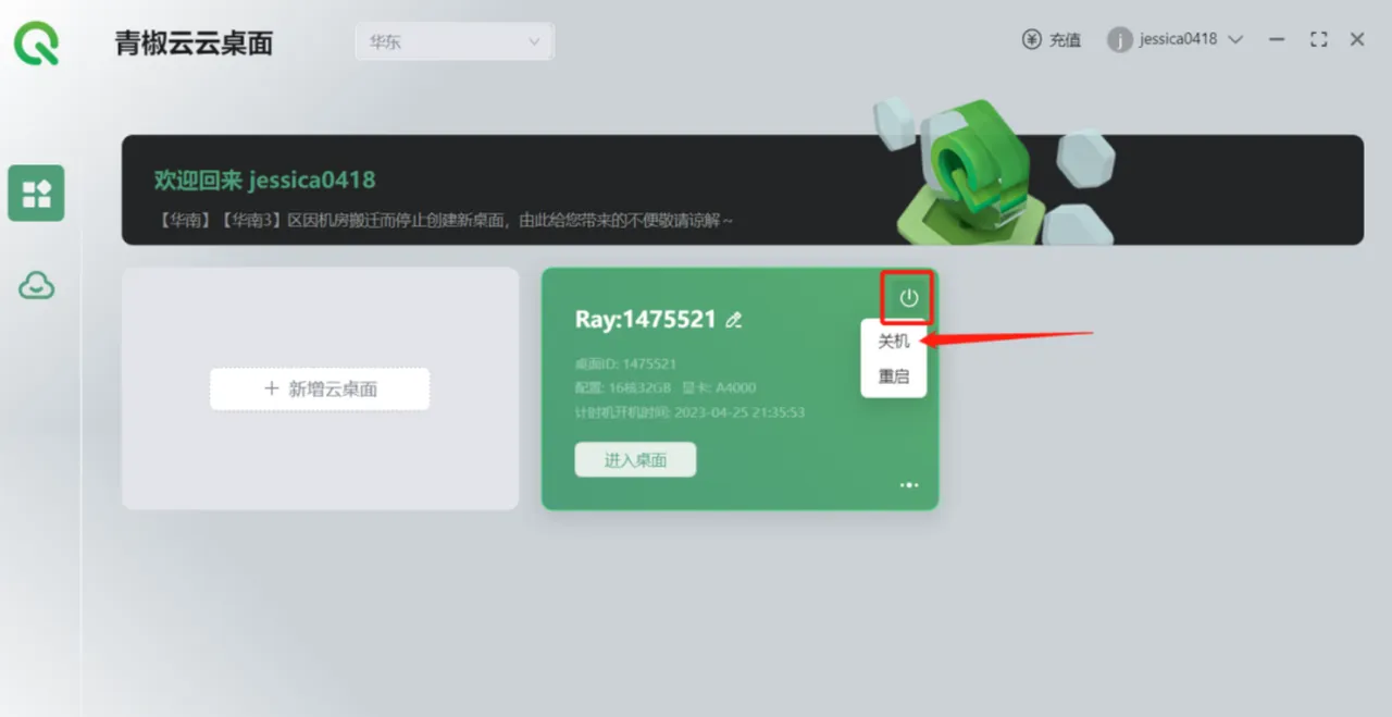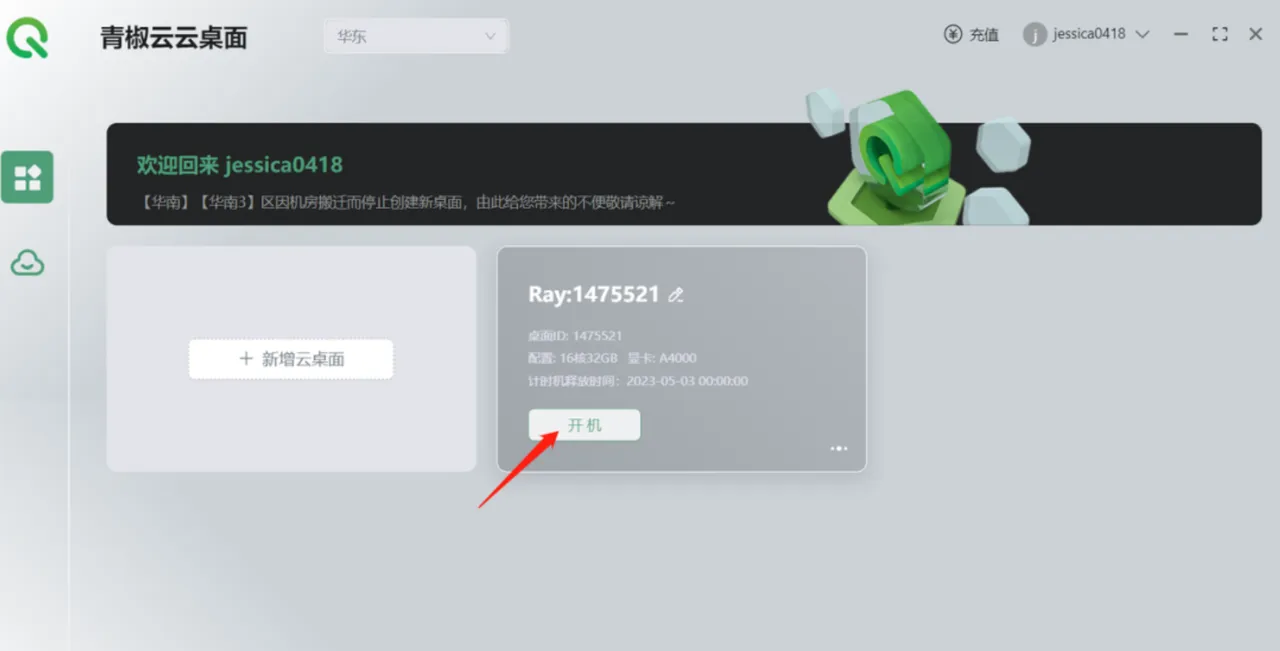 ④在进行实名认证后回到主界面,点击新增云桌面
