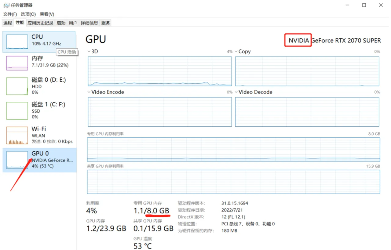 接着看到下面划线的专用GPU内存
