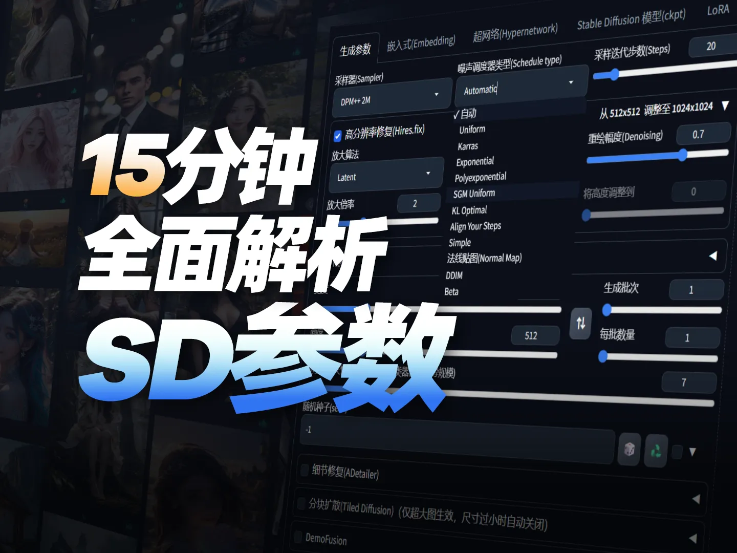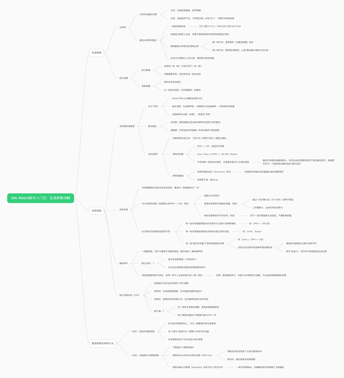 在这一课里,我们将深入剖析 WebUI 的各项参数,包括分辨率、批次数量、采样器、迭代步数等。你将明白这些参数如何影响生成效果与效率,并学会如何结合模型最佳分辨率来避免常见问题。课程还会带你认识采样的原理和不同算法的差异,让你能更灵活地调整参数,提升作品的质量与可控性。