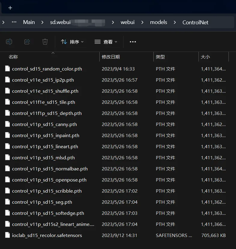 模型放置位置:webui\models\ControlNet