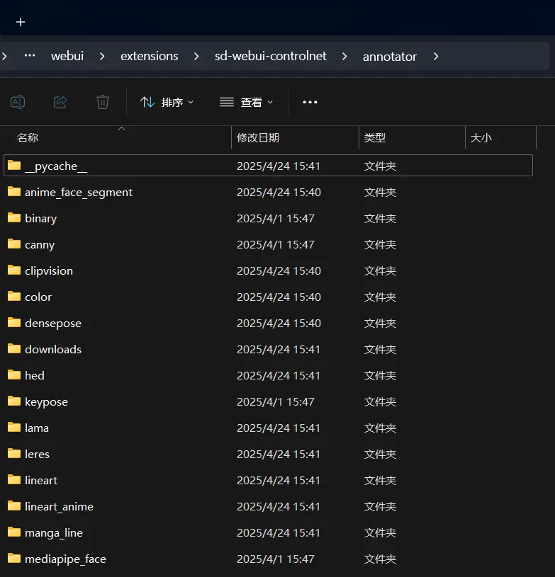 预处理器放置位置:webui\extensions\sd-webui-controlnet\annotator